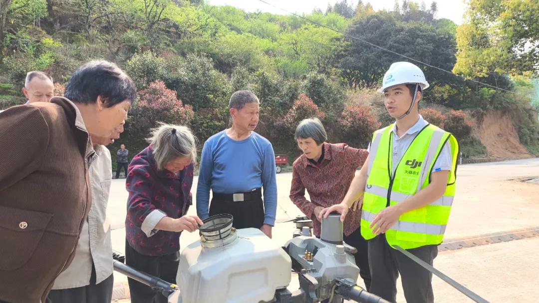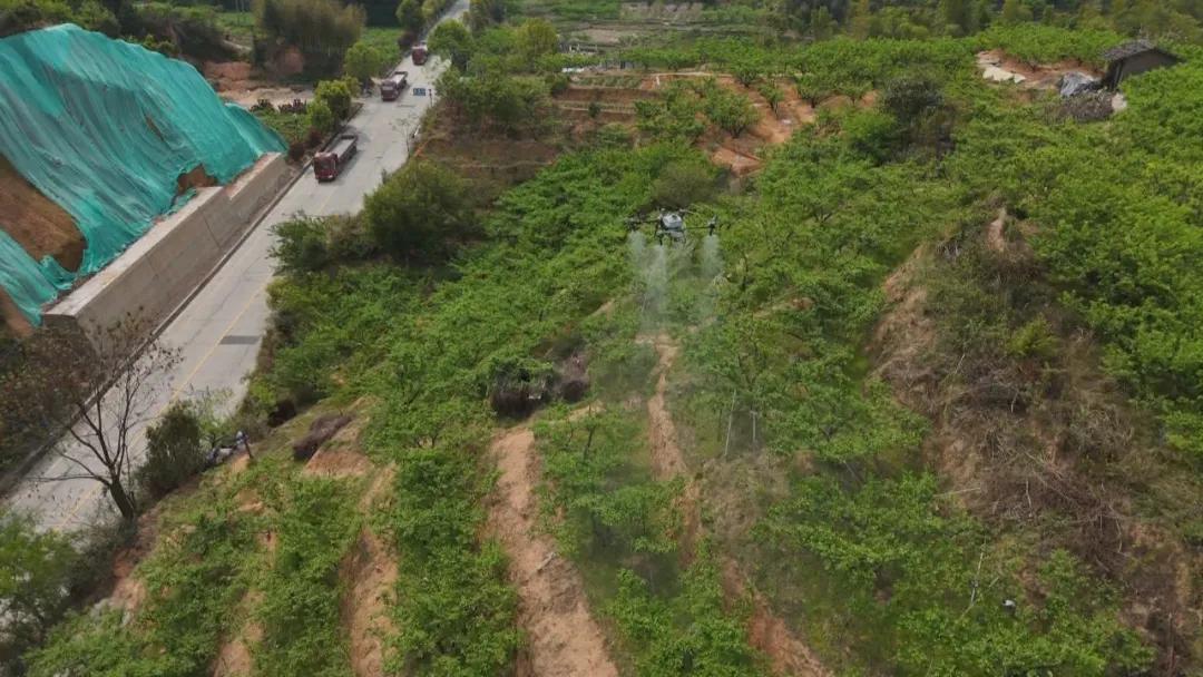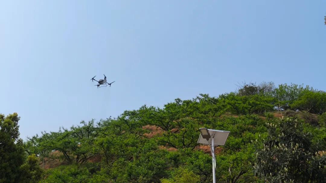 在四堡鎮雙泉村的果園里,福建省碩谷農林科技公司的技術團隊正進行無人機植保作業展示。隨著技術員精準操控,無人機在果林上空靈活穿梭,細密藥霧如輕紗般均勻覆蓋枝頭。種植戶們紛紛仰頭觀望,不時舉起手機拍攝。