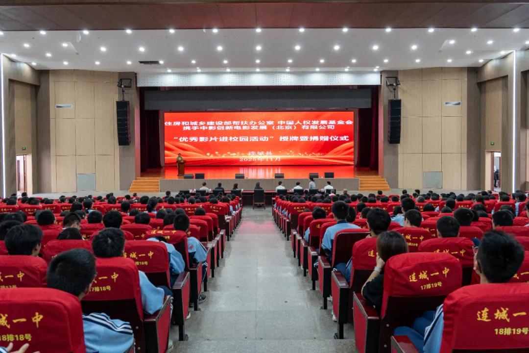 在連城一中“優(yōu)秀影片進(jìn)校園活動(dòng)”中,全體師生觀看中影校園影視公益服務(wù)平臺(tái)視頻和電影《志愿軍》,并舉行電影設(shè)備捐贈(zèng)授牌儀式,為連城一中、一中蓮北校區(qū)、二中授牌。賈會(huì)霞指出,作為中央宣傳部主管、致力于促進(jìn)人權(quán)事業(yè)發(fā)展的公益組織,中國(guó)人權(quán)發(fā)展基金會(huì)認(rèn)真貫徹落實(shí)習(xí)近平總書記關(guān)于尊重和保障人權(quán)的重要論述,依托“中影校園影視公益服務(wù)平臺(tái)”,策劃實(shí)施“優(yōu)秀影片進(jìn)校園”公益項(xiàng)目,旨在把優(yōu)質(zhì)文化資源精準(zhǔn)送達(dá)校園,幫助同學(xué)們健康成長(zhǎng)。董紅梅強(qiáng)調(diào),紅色文化是革命老區(qū)最寶貴的精神財(cái)富,青少年是傳承紅色血脈、賡續(xù)紅色基因的核心力量。希望學(xué)校要以捐贈(zèng)為契機(jī),創(chuàng)新紅色教育形式,打造“光影育人”特色品牌,讓紅色教育更具吸引力、感染力。同學(xué)們要以電影設(shè)備為橋梁,在經(jīng)典影片的藝術(shù)熏陶中觸摸歷史溫度,在革命故事的沉浸式體驗(yàn)中感悟初心使命,將紅色精神內(nèi)化為成長(zhǎng)路上的精神滋養(yǎng)。她表示,住房城鄉(xiāng)建設(shè)部將持續(xù)把老區(qū)青少年成長(zhǎng)、民生需求放在對(duì)口支援工作的重要位置,持續(xù)深化“親戚式”幫扶關(guān)系,以更實(shí)舉措、更優(yōu)服務(wù)助推革命老區(qū)蘇區(qū)在高質(zhì)量發(fā)展的道路上闊步前行,讓紅色土地?zé)òl(fā)新的時(shí)代生機(jī)。